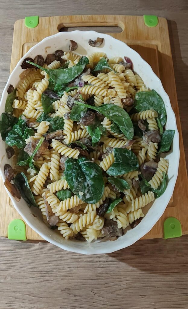 - mushroom pasta with baby spinach